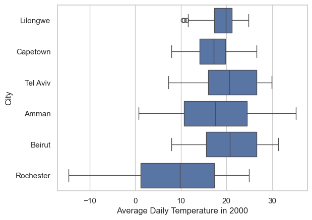[Text(0.5, 0, 'Average Daily Temperature in 2000')]