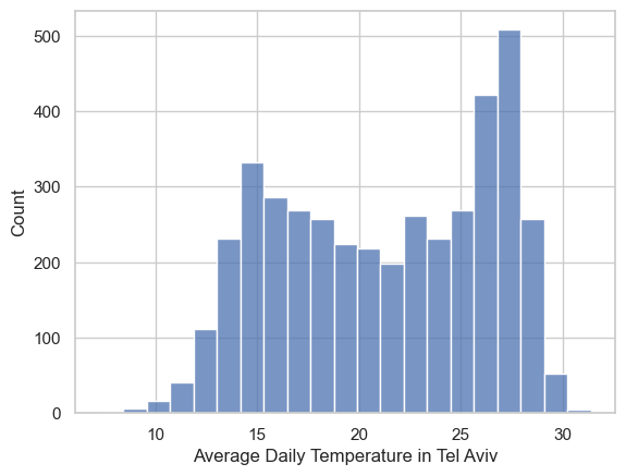 ax.set(xlabel=f'Average Daily Temperature in {city}')[Text(0.5, 0, 'Average Daily Temperature in Tel Aviv')]