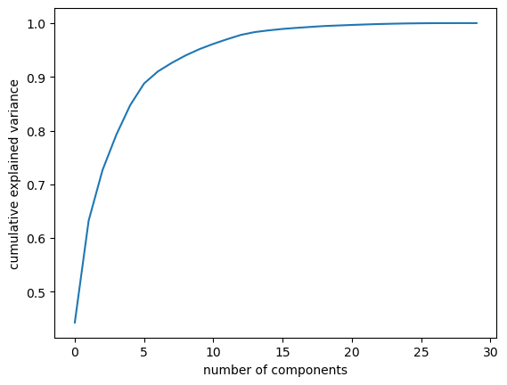 plt.ylabel('cumulative explained variance');