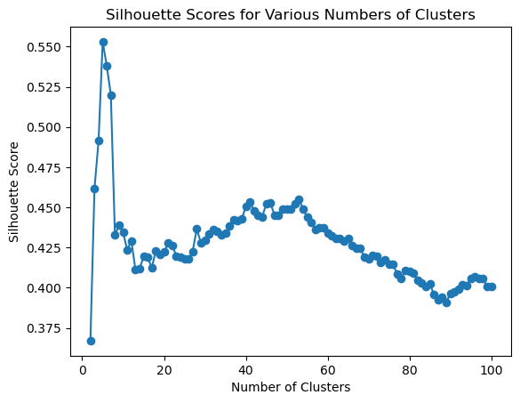ax.set_title('Silhouette Scores for Various Numbers of Clusters')