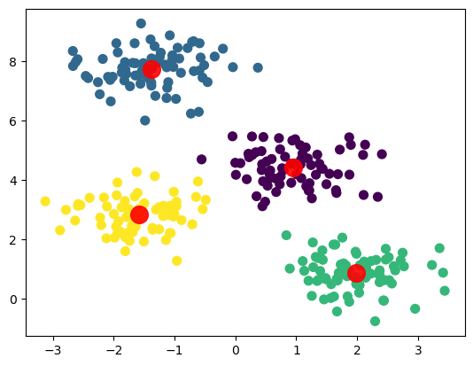 The “E-step” or “Expectation step” involves updating our expectation of which cluster each point belongs to.