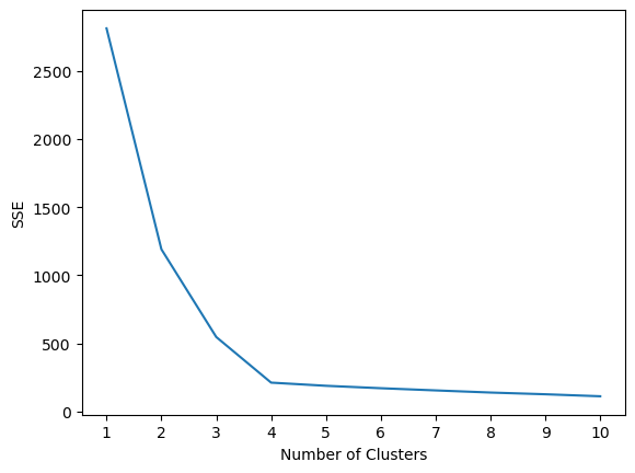 print(f"With {k} clusters the SSE was {error}")With 1 clusters the SSE was 2812.137595303235
