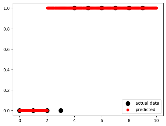 You can get the actual predictions, based on the probability matrix and the values of 𝑝(𝑥), with .predict(). This function returns the predicted output values as a one-dimensional array.
