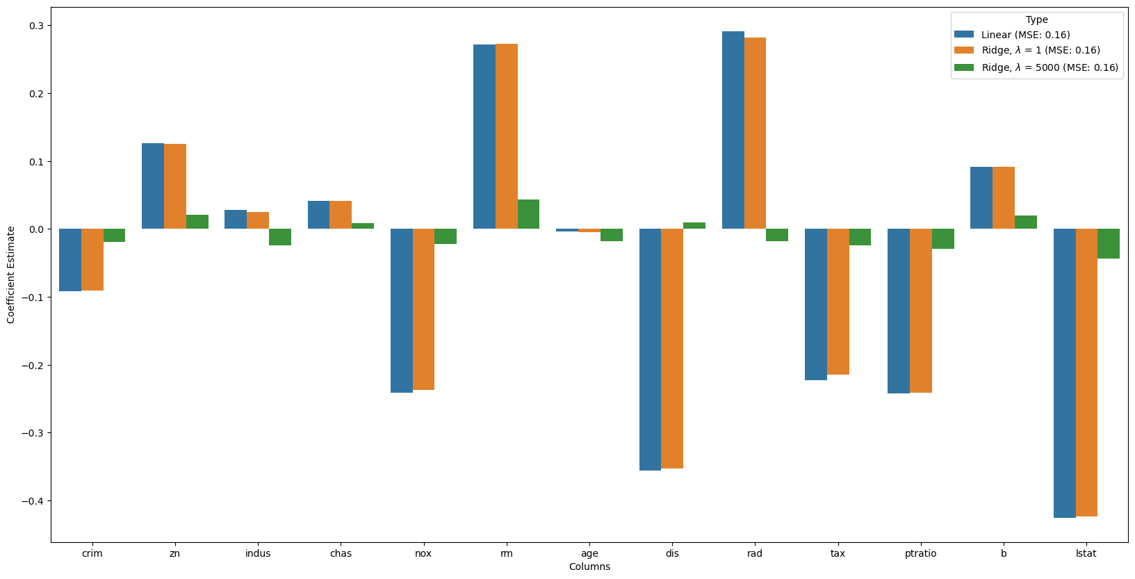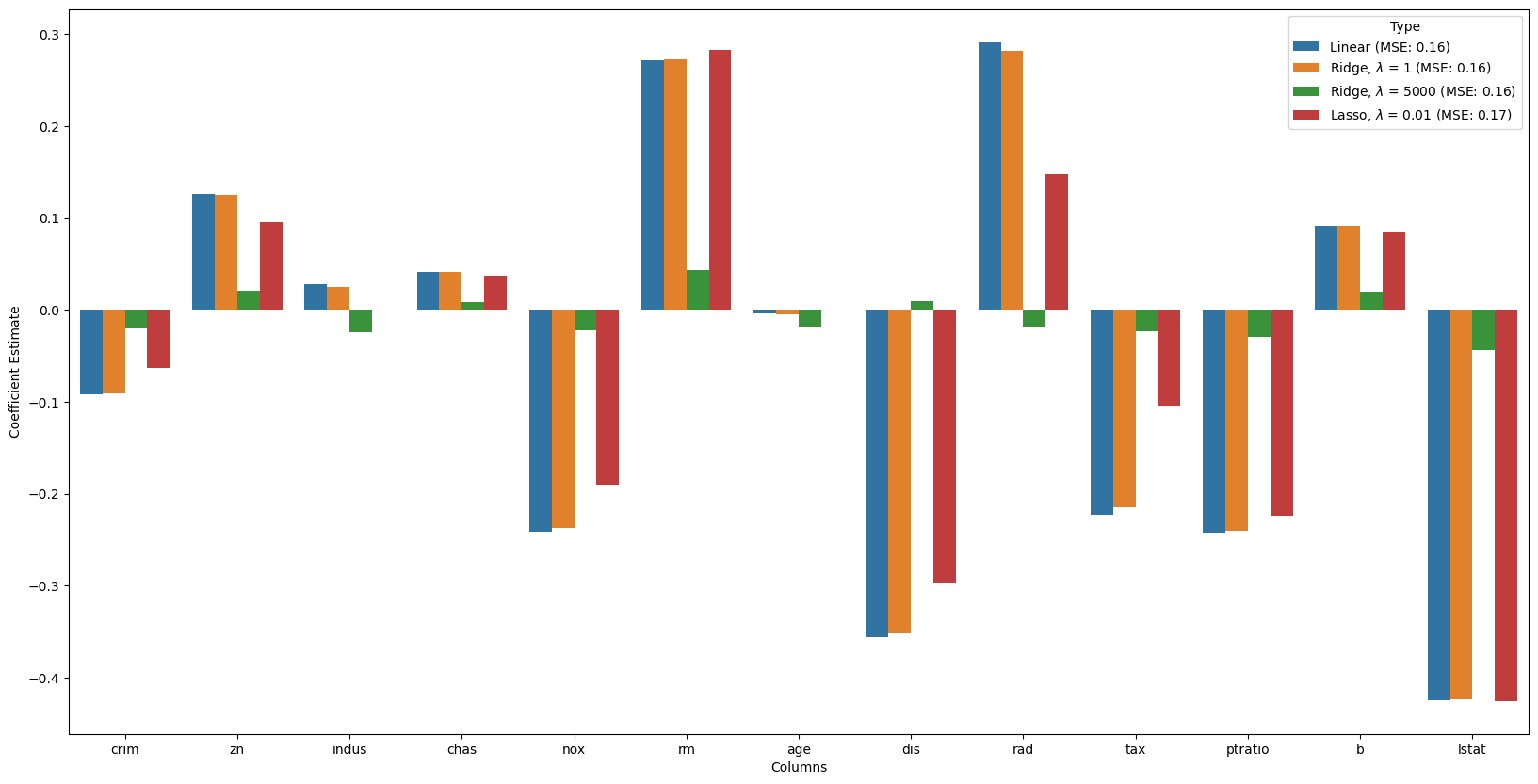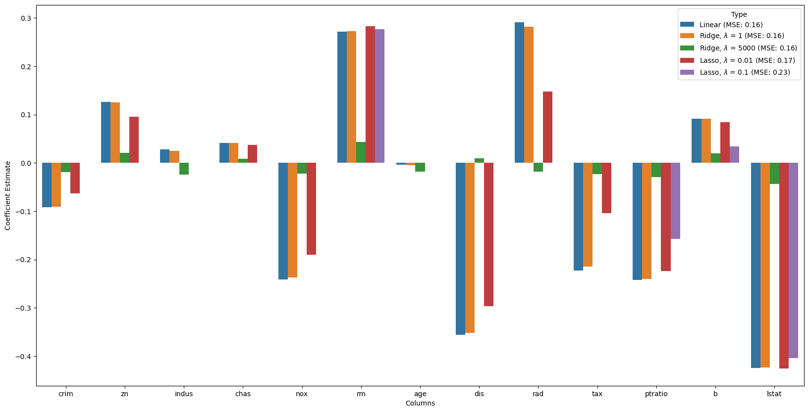 hue = all_coefs['Type']) <Axes: xlabel='Columns', ylabel='Coefficient Estimate'>