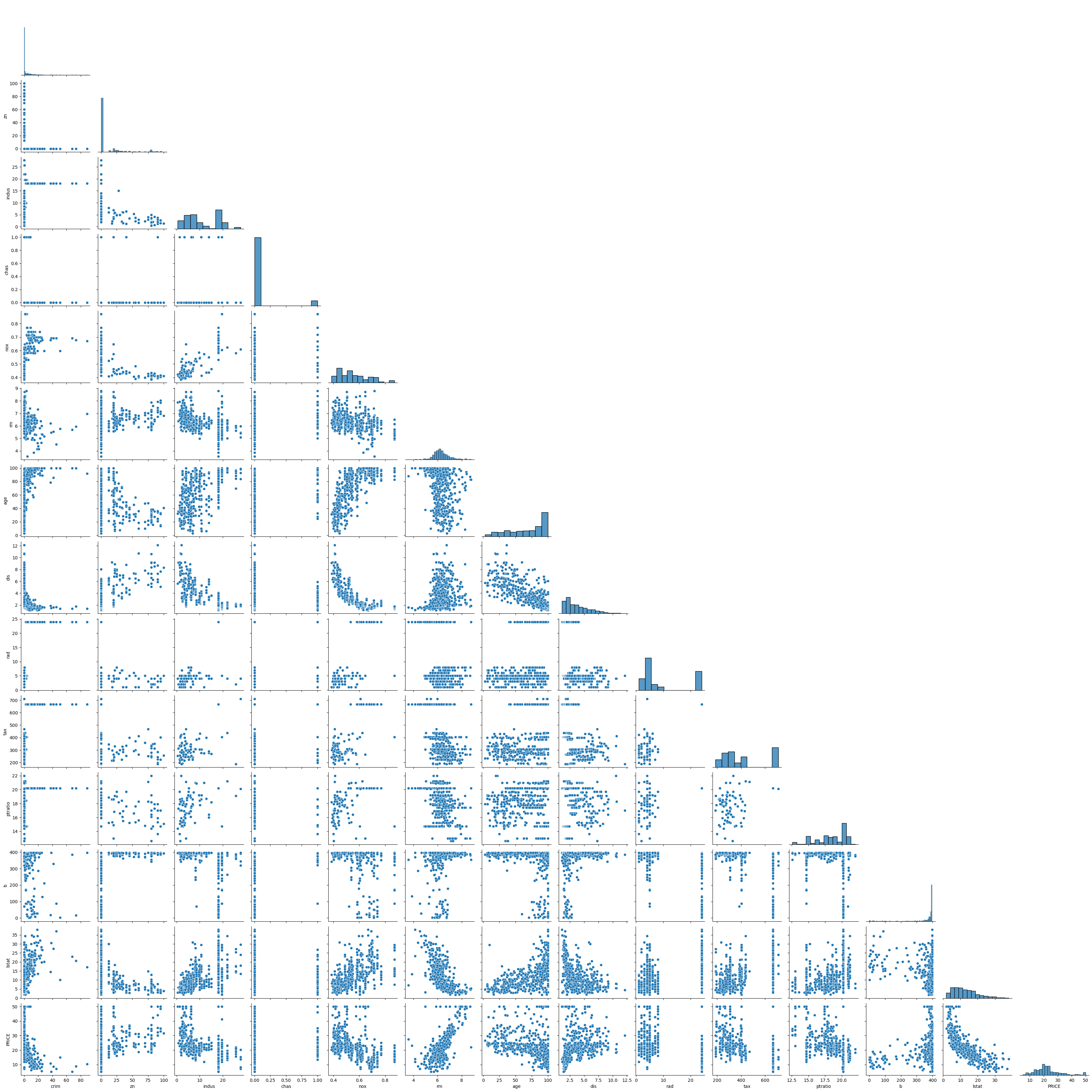 data.head()| crim | zn | indus | chas | nox | rm | age | dis | rad | tax | ptratio | b | lstat | PRICE | |